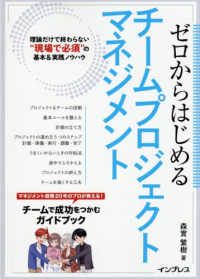 「チーム」に焦点を当てたプロジェクトマネジメント入門の決定版!「はじめてプロジェクトに配属された」「いきなりプロジェクトリーダーを任された」―けど、なにをすればいいの?本書はそんな悩みに答える、「チーム」に焦点を当てたプロジェクトマネジメント(PM)入門書です。すでにDX推進の現場で奮闘するリーダーやメンバーはもちろん、リスキリングをしてこれからPMを学ぶ方にも最適の一冊です。豊富な経験を持つ著者が、PMの基本から、チームで最初に決めるべきこと、計画、進捗管理、問題解決、ふりかえりまでの具体的なマネジメントのプロセスと、現場で本当にやるべきことを徹底解説します。たとえば、プロジェクトの立ち上げから終了まで、各フェーズでチームが直面する課題と解決策をやさしく手ほどき。チームでの役割分担、効果的なコミュニケーションの方法、現実的なスケジュールの立て方や進捗状況の把握、予期せぬトラブルへの対応など、チームで成果を出すPMの基礎&実践スキルが無理なく身につきます。プロジェクトマネジメント未経験者や初心者が陥りやすい失敗、プロジェクトを成功させるための秘訣、そして、プロジェクトが迷走してしまった際の立て直し方まで、今日からすぐにチームで実践できるノウハウが満載です。