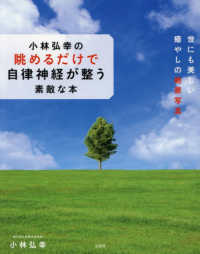 美しい風景や草花、愛らしい動物の写真を眺めたり、絶景や絵画のまちがいさがしパズルを楽しんだりするだけで、乱れた自律神経が整う本です。長期化するコロナ禍という側面もあり、今日の社会生活は自律神経が乱れる要因でいっぱい。著者が独自に開発したさまざまなメソッドから、「眺めるだけで自律神経を整える」というテーマで一冊にまとめました。自律神経を「眺めるだけ」で整える本書で、乱れた心身の状態を改善しましょう。