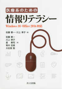 医療系を学ぶ学生向けの実践的な「情報リテラシー」のテキストとして,Windows 10とOffice 2016をベースにして,パソコンの仕組みと基本操作から,ワープロ,表計算とグラフ,プレゼンテーション,化学構造式描画,インターネットでの医薬品情報検索などを取り上げている。初心者でもポイントを理解しやすく,かつ実践的であることに重点をおき,著者らの大学教官としての長年の現場経験から,入門者がつまずきやすい点などにも配慮して解説している。