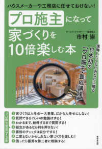 マイホームづくりに絶対に失敗したくない!後悔したくない!そのためには、ハウスメーカーや工務店に任せるのではなく、プロ施主となって自ら学び、チェックし、家づくりという人生の一大事業に挑んで欲しい。大金をドブに捨てないために、インスペクションの第一人者があなたに贈る、渾身の一冊!