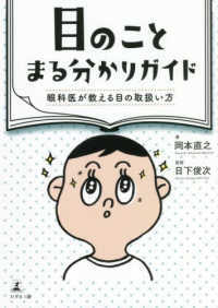 視界がかすむ、光がまぶしい、目が痛い…そんな症状を放っておくと失明や命に関わることも!目の仕組みから病気、治療法、予防法まで。目に関するあらゆる情報を分かりやすく解説。いざという時のために、知っておきたい詳細図解付き目の健康大全。目のことを知りたい患者だけでなく、医学生、医療関係者にも役立つ一冊!