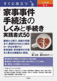 離婚から親子、相続の問題まで。家庭内のもめごと解決の一歩は本書から!家事調停・家事審判の手続きと書式を網羅的に解説。家事調停、家事審判の申立書式を50書式掲載。強制執行や履行確保の手続き、保全手続きについても解説。人事訴訟、公正証書のこともわかる。