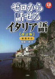 言葉がわかれば旅もグルメも楽しくなる! ゼロからイタリア語を始める人のための,コミュニケーション重視型の入門書です。会話の第一歩となる「覚えるフレーズ」で学習をスタート。場面別のミニ会話でイタリア語の基礎を習得し,表現の幅を広げます。文法のまとめ,イラスト単語集,インデックス付。この1冊で,イタリア語の基礎はバッチリです。