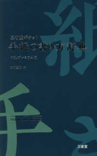 正しい手紙の書き方がわかる、目に優しい中型版辞典。頭語と結語、時候のあいさつ、敬語の使い方など、手紙を書く際に必要な一定の形式がすぐにわかる。さまざまな生活の場面に応じた多彩な手紙文例を満載。洗練されたケース付きデザインによって、モノとしての魅力を併せ持つ、瀟洒で小粋な辞典。