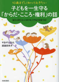 『10歳までに身に付けたい〜』シリーズの第4弾。今度は、性教育です。10歳までに知っておいてほしいこと。それは「イヤ」とちゃんと言えること、「境界線」を知ること(自分の心を守ることにつながります)。そこから、思春期に向けて体がどう変わっていくか、親がなかなか伝えられないことをどう自然に子どもに伝えていくか、親子で学んでほしい1冊です。また、性教育に取り組む保育士、教員の方々にも使えるよう、大人と子どもが一緒にできるワーク付きになっています。