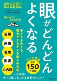 疲労などで衰えた視力や、老眼、白内障や緑内障まで対応する。すぐに、いつでも、だれでもトレーニングを開始できるよう、たくさんのイラストで解説。累計150万部突破のベストセラー「視力回復マニュアル」が、大判で図解もあらたに、わかりやすくなった決定版です。