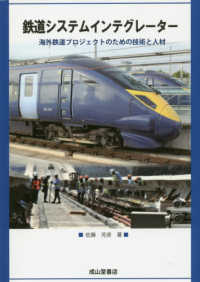 鉄道を構成する軌道、車両、電力供給、信号、通信などのシステム全般を見渡し、計画・設計段階でそれぞれに必要な性能・機能を割当て、システム間の条件を調整する「鉄道システムインテグレーター」は重要な役割を持つ。本書は、海外の鉄道プロジェクトの業務や組織体系、システム、それに携わる鉄道システムインテグレーターの役割と必要性について解説、海外で活躍できる日本人鉄道インテグレーターの養成とその重要性を説く。