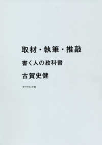 プロの「書く人」になるために。ひとりでも多くの人を喚起する「原稿」をつくるために―。取材とは、インタビューのことではない。一冊の本のように「世界を読む」ところからすべては始まる。執筆とは、「書くこと」である以上に「考えること」。センスでなく思考のみが、達意の文章を生み出す。推敲とは、原稿を二段も三段も高いところまで押し上げていく行為であり、己の限界との勝負である。