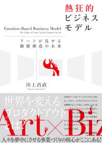 アートマインドセットでビジネスマインドセットを書き換える!アートは、従来のビジネスに向き合う姿勢や態度を意味するマインドセットを大変革する力を持っている。本書は、このアートマインドセットをビジネスの脈絡に落とし込むことで、これからの「問題提起型」の事業環境に適したマインドセットを確立し、ビジネスのアップグレードをめざす。これをビジネス・アートマインドセットと呼ぶ。これは、アーティストがアート作品に向き合う姿勢や態度をベースに置くものだ。既存のビジネスをベースに、単にアートを付け足すのではなく、アーティストの姿勢や行動様式に着目してビジネスモデルを再構築して展開することを提案する。「もし、アーティストのマインドセットで新規事業を開発したら、どのようなビジネスモデルが生まれるのか」という視点で、新しいビジネスの可能性を探るのだ。本書では、その体系を示すが、従来のビジネスモデルと区別するために、「熱狂的ビジネスモデル」と呼ぶ。