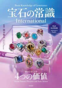 本書は、世界的に見た宝石の価値に照準をあて、シリーズの蓄積を活かしながら新しい時代のスタンダードになる1冊です。多くの記事に関して英文も表記するとともに、海外のディーラーの紹介や、新しい世界的なトレンドなど、”International”にふさわしい『宝石の常識』として編集。宝石の4つの価値、「コレクション」「財産」「ファッション」「お守り」をベースに丁寧にビジュアル解説していくことで、宝石の世界をさらに多重的、かつ多面的に楽しめるよう構成しました。