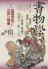 特集 出版文化と江戸の教養政事と文学醍醐寺と紙の文化書物学こと始め(文庫をひらく(第二回)静嘉堂文庫書物の声を聞く 書誌学入門(4)続、和本の海へ(3)運歩法書籍文化史料片々(其之四)信州松本の貸本商売―穀屋儀七貸本広告と貸本印江戸時代の古文書の読み方(4)宗門人別帳ベストセラーと雑誌の出版史(4)自著を語る 近代学問の起源と編成コラム 日本漢詩文についての新しい通史を描く―「日本漢文学プロジェクト」の概要と背景)