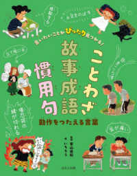 ふだん使う言葉を見出しにして、その言葉と似た意味のことわざ・故事成語・慣用句をまとめて約320紹介するシリーズ。この巻では、「動作をつたえる言葉」を集めました。例えば「休む」でとりあげたのは、「羽をのばす」「息をぬく」「手足をのばす」「ひと息いれる」。これらの言葉がどんなふうに使われているのか、家や学校、塾や公園など、子どもたちにとって身近な場面や出来事を例にして解説します。例をわかりやすく表した絵も掲載。「使い方のコツ」と合わせて読むと理解が深まります。