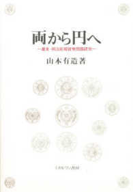 「円」の誕生の物語は幾多の先行業績をもつ。日本貨幣史の近世から近代への連続性に注目しつつ、誕生期の「円」の実態構造を解明し、複合存在としての「円」の相互関係の検証を通して、貨幣史研究を歴史統計分析へと拡大する。