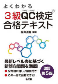 本書は、品質管理検定(QC検定)に合格するためのテキストです。基礎からわかりやすく学習していただけるように編集してあります。各章のそれぞれの節の冒頭に重要な学習ポイントを掲載した上で、試験に出やすい基本事項を解説し、確認問題と実践問題を掲載しています。巻末には模擬問題を収録しました。また、各章の各節と実戦問題に、重要度を表示しているので、効果的な学習に役立てることができます。