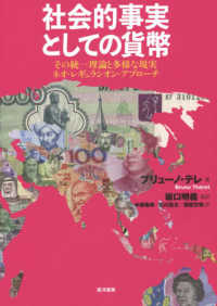 第1部 統合された貨幣の社会科学に向けて(貨幣の三つの状態―貨幣的事実への学際的アプローチ;貨幣と生の債務;貨幣の政治哲学―ホッブズ・ロック・フィヒテの比較)