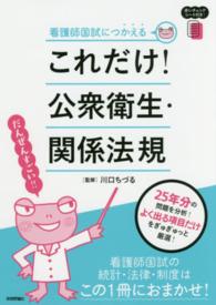 看護師国家試験の統計・法律・制度は、この1冊におまかせ!過去25年分の問題を分析し、よく出る項目だけをぎゅぎゅっと厳選! 【本書のポイント】★効率UP! 第106回の国試に出る年度の統計数値だけを掲載!★総問題数は187題! 圧倒的な問題数で出題のポイントがわかる!★いつでもどこでも! 付録の赤シートで重要語句が隠せる!★直前対策にも! 80題の1問1答で、試験直前までしっかり学べる!