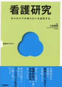 看護研究の必要性と、臨床へのつながりが理解できる。研究に必要な基礎的能力を養い、科学的思考を身につける。研究計画から発表まで、ワークブック形式で順を追って学べる。