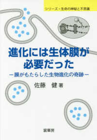 前半では生体膜の構造と働きについて丁寧にわかりやすく解説し、後半では原核細胞から真核細胞、多細胞生物へと進化する道筋の仮説を新たな視点で紹介して、生物進化において生体膜の果たした役割の全体像をやさしく紐解きます。