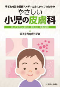 好評『やさしい小児の眼科』の姉妹本、ついに誕生!子どもの皮膚トラブル もう悩まない!小児の皮膚疾患は、成人と異なる特徴が多く、診断や治療に悩むことも多いのではないでしょうか。本書は、小児皮膚科学の基礎から応用まで、日常診療で役立つ知識をわかりやすく解説しています。豊富な図版とQ&Aで、小児の皮膚を診るすべての方にとって必携の一冊です。