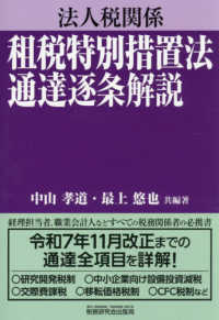 ◆本書は、租税特別措置法関係通達(法人税編)の全項目について、通達原文、改正の経緯、通達制定の趣旨、通達と法令の規定及びその他の取扱いとの関連、疑問点に対する意見、具体的な計算手続等を含めた実務解説の形で構成し、詳説しています。