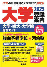 1962年の創刊以来62年にわたり全国の受験生保護者の方々教育関係者の皆さまから信頼を得てきた「大学選びの決定版」! 河合塾駿台予備学校の2大予備校の偏差値データをはじめ大学の概要や就職支援国際化への取り組みなど大学選びに欠かせない有用な情報を比較検討しやすい誌面で紹介しています。また入試日程などの最新情報はWebサービス「らくらく併願カレンダー」(無料)で公開。晶文社は書籍とWebで大学選びから入学手続きまで1年間受験生の皆さまをサポートします。