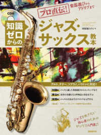 アルト、テナー、ソプラノ、バリトンに対応!「知識編」ジャズに適した楽器選びからセッティングまで。「奏法編」演奏の基礎となる呼吸法と奏法を学ぶ。「実践編」ジャズの音色を学びアドリブを入門する。“Q&A”ビギナー・プレイヤーの疑問や悩みを解決。ジャズを吹きたい初心者のためのサックス入門書。