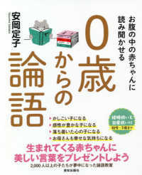人付き合いで本当に大切なもの。深呼吸して心を落ち着ける。ささいなことでイライラしない。知ることはスタートライン。自分に重ねて考えてみる。知ったかぶりはしない。目線はいつも上向きに。見通しをもって導いてあげる。「ごめんなさい」を言える勇気。お友達のことも一緒に褒める。良い習慣は幼いうちに。美しい言葉が人生をつくる…『論語』の名句をお腹の中の赤ちゃんに読み聞かせよう!結婚祝い&出産祝いに。胎児〜3歳まで。