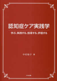 第2部 「指導する&評価する」―認知症ケア実践の指導法と評価法(認知症ケアの指導及び評価することの意義と目的;「ICFの理念に配慮した認知症ケア」の指導・評価の視点&ポイント;「意思疎通に配慮した認知症ケア」の指導・評価の視点&ポイント;「中核症状に配慮した認知症ケア」の指導・評価の視点&ポイント;「BPSDに配慮した認知症ケア」の指導・評価の視点&ポイント)