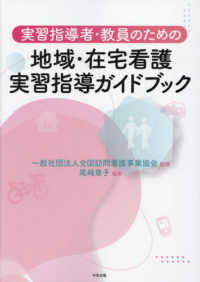 本書は、訪問看護ステーションをはじめとする地域の実習施設と教育機関が、実習の目的を共有してより質の高い「地域・在宅看護実習」を行うために、実習計画や指導、評価方法などの具体的な立て方・進め方、また、昨今の学生とのかかわり方などを紹介。実習施設には実習を受け入れる際の手引書として実習指導の具体的方法やポイントがわかり、また、教育機関には実習カリキュラムの組み立て方、よりよい実習企画の立て方・展開法、実習施設との連携のあり方等がわかります。