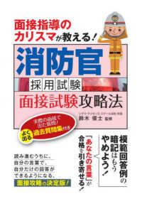 具体的なダメな回答例と伝わる回答例から、答え方がわかるようになる。回答のつくり方を知って自分だけの回答ができるようになる。面接練習に役立つ過去頻出質問集を収録。火事や事故にいち早く駆けつける消防官。そんな消防官になる!という志を持つ志望者たちの一助となる面接攻略書。