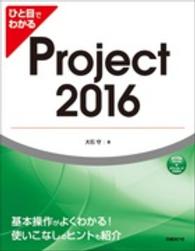 Project 2016の画面を豊富に使ったフルカラーの紙面でわかりやすく解説するビジュアルリファレンス。本書はProject 2016の操作手順と、プロジェクトマネジメントにおける活用のポイントを、画面を豊富に使ったフルカラーの紙面でわかりやすく解説するビジュアルリファレンスです。第1章ではプロジェクトマネジメントでProjectを使うメリットと活用のポイント、Projectの初期設定手順を解説し、第2章以降でProject 2016の操作手順を説明しながら、プロジェクト計画の作成、プロジェクトの進捗管理、プロジェクト計画の分析と再利用、プロジェクト情報の共有などを行うための方法を解説しています。2016版では、クラウドで利用できる「Project Online」の説明を増やし、新しい章として独立させました。