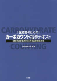 1 カーボカウントとは(カーボカウントの基本;カーボカウントによる食事療法の特徴)2 基礎カーボカウント(基礎カーボカウントとは;基礎カーボカウント教育の進め方)3 応用カーボカウント(応用カーボカウントとは;応用カーボカウントの実際)4 外食・中食の利用時におけるカーボカウントのポイント(外食・中食の利用時の基本的な考え方;外食・中食の利用時におけるカーボカウントの実際)