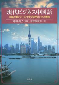 中国の文化やビジネス慣行の実際を学び、ビジネス中国語を聞き、話し、読み、書くことができるように工夫したビジネス中国語の入門書。新規取引のために中国の会社を訪問した日本人が出会う中国の文化や慣習を知り、会話と通信文の書き方を学んでいく、会話編/文化・慣習編とビジネス電子メール編から構成されている。
