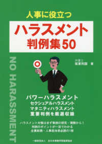 パワーハラスメント、セクシュアルハラスメント、マタニティハラスメント、重要判例を厳選収録。判例のポイントが一目でわかる企業総務・人事担当者必読の1冊。