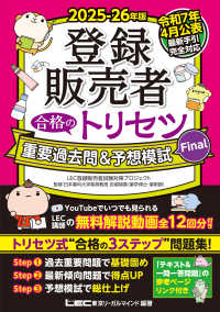 令和7年4月公表「登録販売者試験問題の作成に関する手引き」完全対応!直近3年分から、毎年頻出の重要問題と最新傾向問題を厳選。全国7ブロックどこでも対応!全国の試験問題を徹底分析して厳選収録。全国に対応した、本番レベルの予想模試1回分を収録!