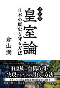 先例をないがしろにする雑系論者を一掃する決定版。旧皇族の皇籍取得を実現するための最良の方法。イギリスよりも「立憲君主制の先輩」である日本、皇室の歴史は日本史そのもの、救国のための皇室論。