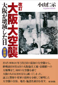 1945(昭和20)年3月13日の最初の大空襲から、終戦前日8月14日の大阪砲兵工廠・京橋駅への大爆撃まで、8回の大空襲を経て大阪の人口は100万人も減ってしまった。証言と警察や米軍の資料を分析して解明した大空襲の全容。地名・施設名索引を付す。