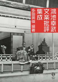第1部 鴻池幸武による「文楽評」の成立―背景と特徴分析(鴻池幸武と「文楽」;鴻池幸武による「文楽評」の成立過程;鴻池幸武による「文楽評」の特異性;鴻池幸武文楽関係略年表;鴻池幸武「文楽評」一覧)