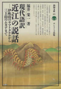 俵藤太が龍宮から貰った宝物のひとつは弁慶の引き摺り鐘。眼病平癒に験を示した天台座主明救は、天狗の生まれ変わり。栗太に生えていた巨樹は幹の回りが何と900メートルもあった。窮地に陥ったとき、助けてくれた小僧は氏寺のお地蔵さまだった。本当のようなウソのような千年前のお話が解説とともに楽しめる。