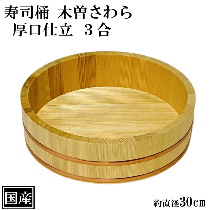 寿司桶 飯台 さわら 30cm 3合 厚口 木製 国産 すし桶 木曽さわら 銅箍 飯切 半切 桶 木桶 天然木 日本製 手作り 職人 高級