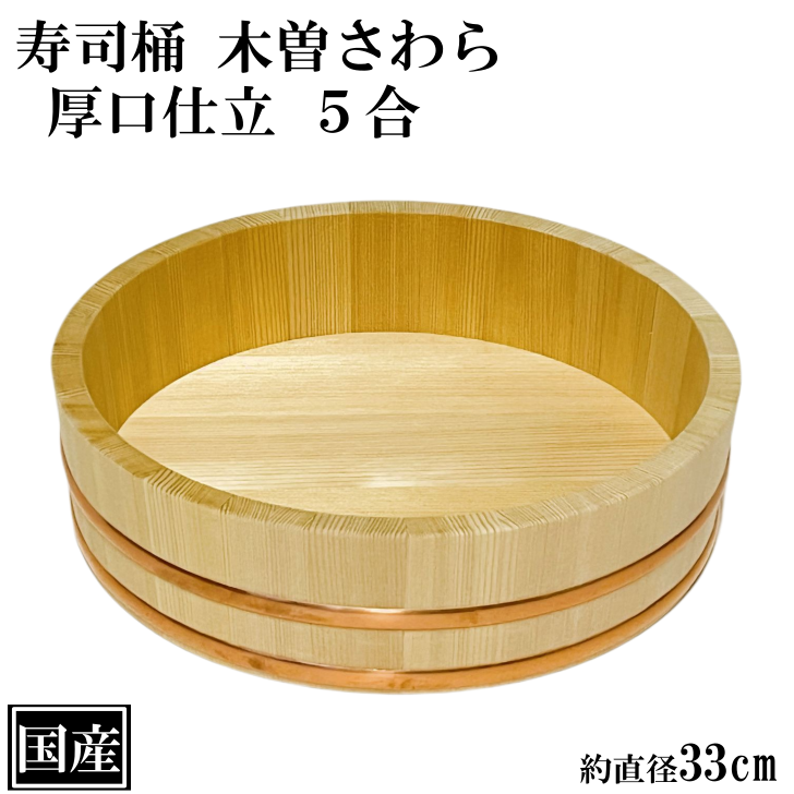 寿司桶 飯台 さわら 33cm 5合 厚口 木製 国産 すし桶 木曽さわら 銅箍 飯切 半切 桶 木桶 天然木 日本製 手作り 職人 高級