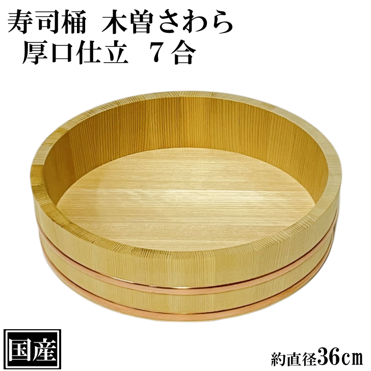 寿司桶 飯台 さわら 36cm 7合 厚口 木製 国産 すし桶 木曽さわら 銅箍 飯切 半切 桶 木桶 天然木 日本製 手作り 職人 高級