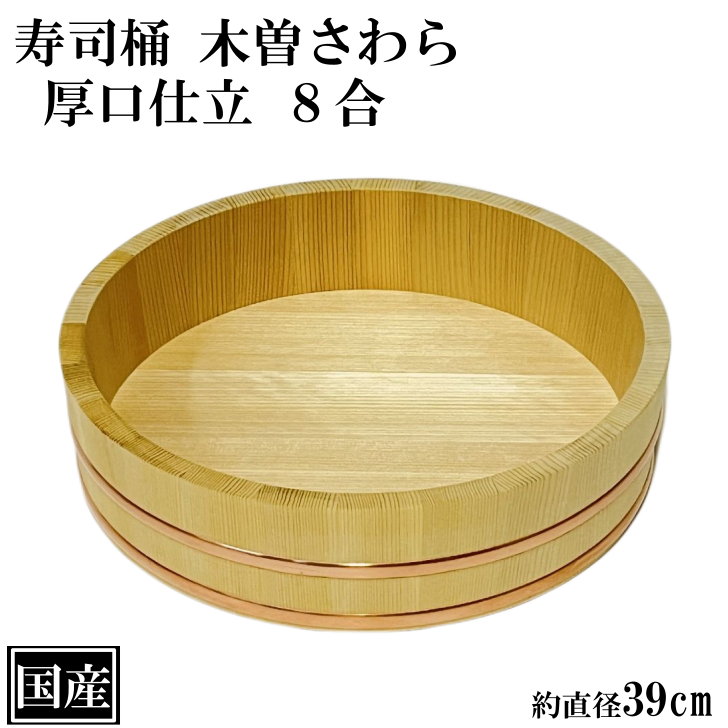 寿司桶 飯台 さわら 39cm 8合 厚口 木製 国産 すし桶 木曽さわら 銅箍 飯切 半切 桶 木桶 天然木 日本製 手作り 職人 高級