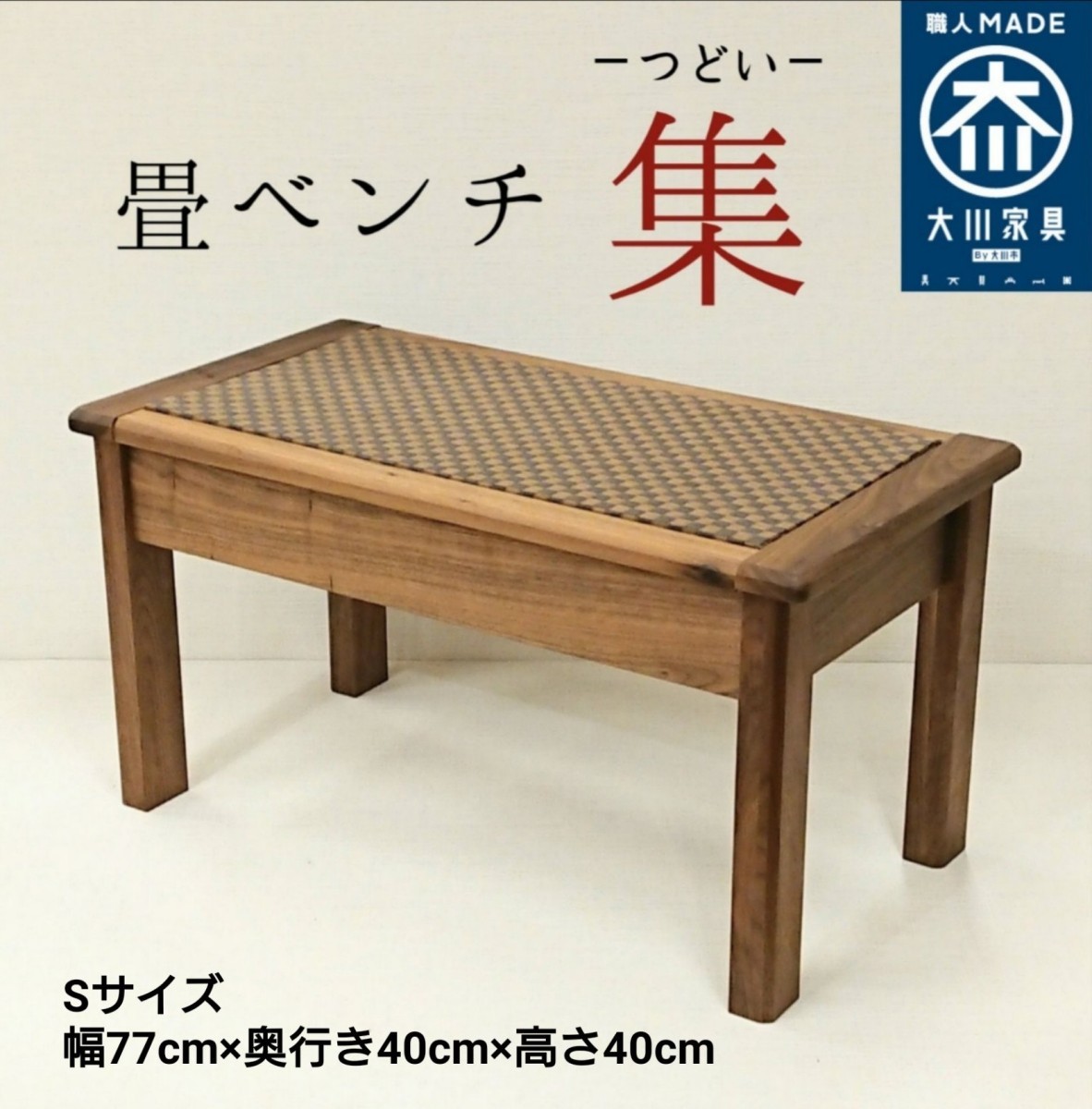 家具の街、福岡県の大川市で製造された日本製の和風畳ベンチです。