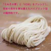 ASWの持つ作業適性の良さ、きれいな淡黄色、滑らかでしっかりとした食感に加え、さぬきの夢の特長である「もっちり感」、「風味の良さ」を兼ね備えた、さぬきうどん専用の小麦粉です。
