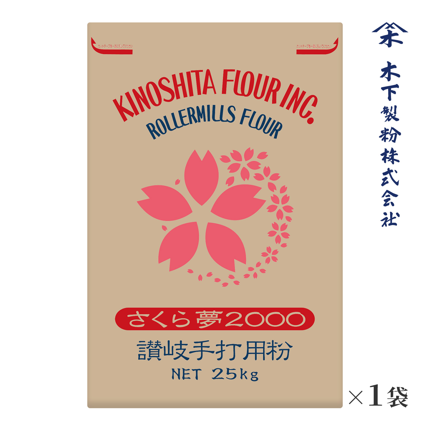 木下製粉 さくら夢2000 25kg 手打ちうどん用 中力粉 小麦粉 紙袋 ファリーナコーポレーション