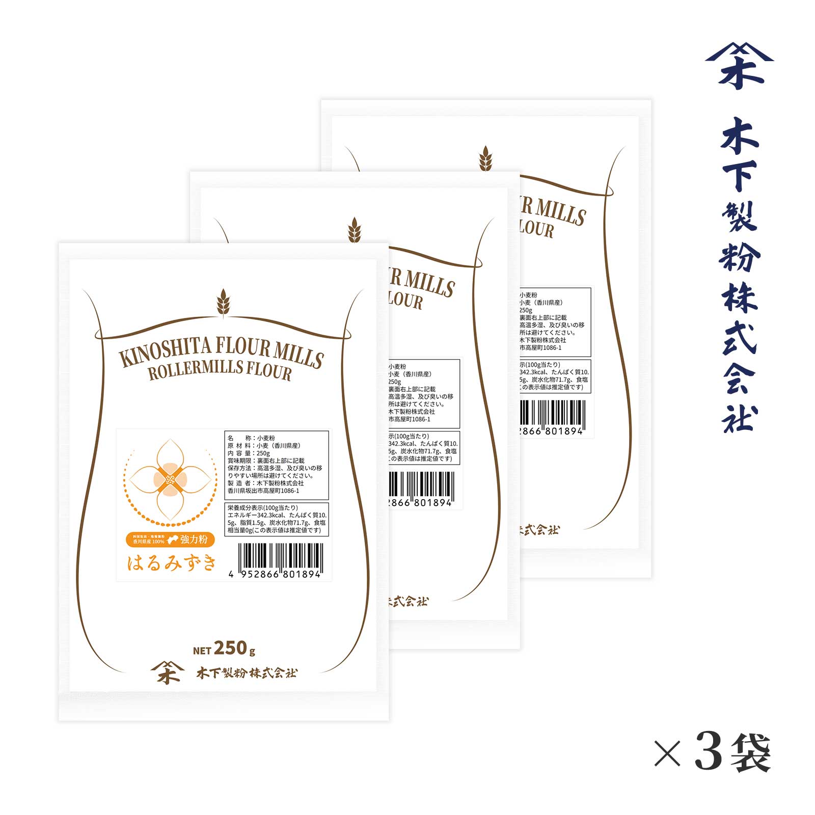 木下製粉 はるみずき 250g × 3袋 パン用 強力粉 小麦粉 香川県産小麦100% 国産小麦 ファリーナコーポレーション