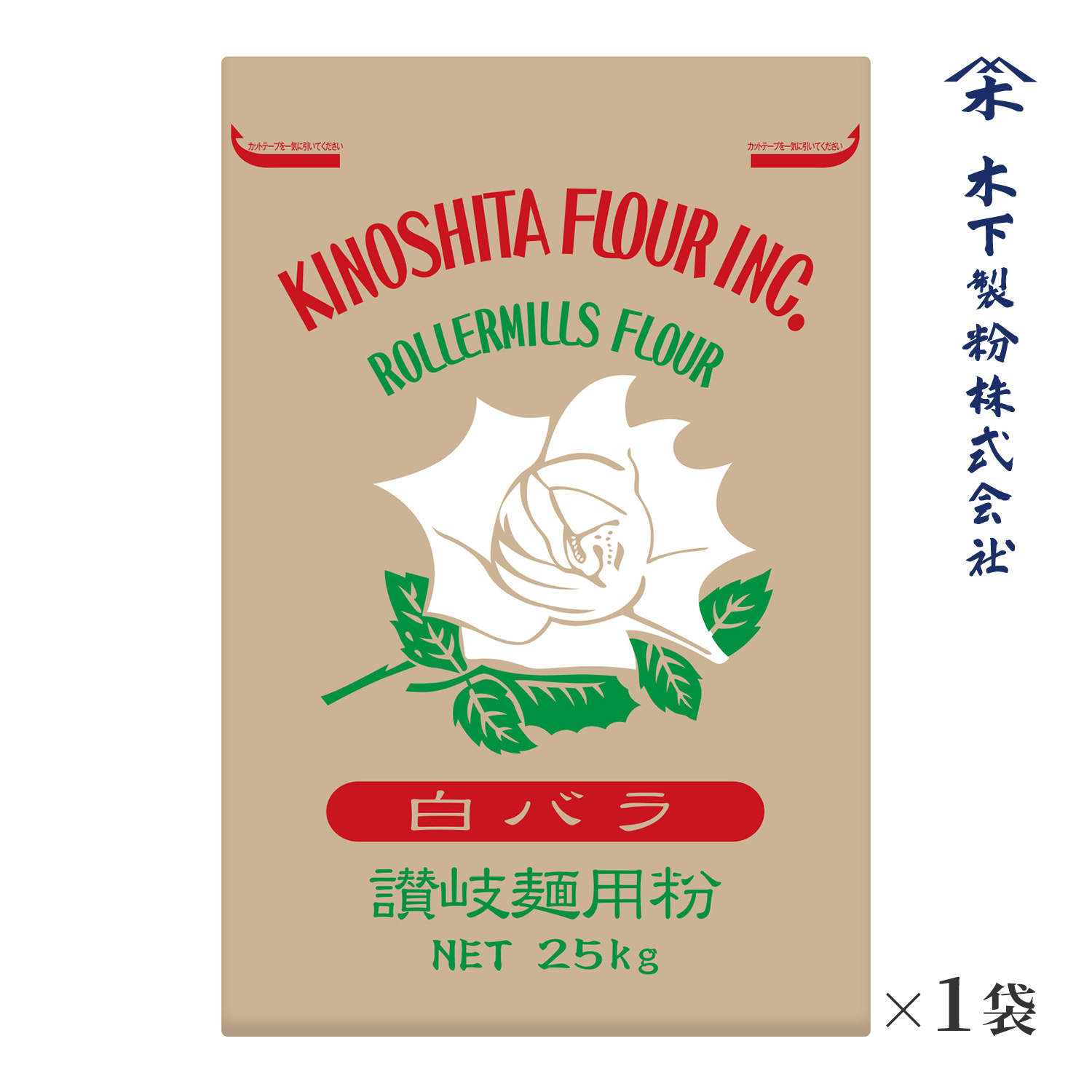 木下製粉 白バラ 25kg 手打ちうどん用 中力粉 小麦粉 紙袋 ファリーナコーポレーション