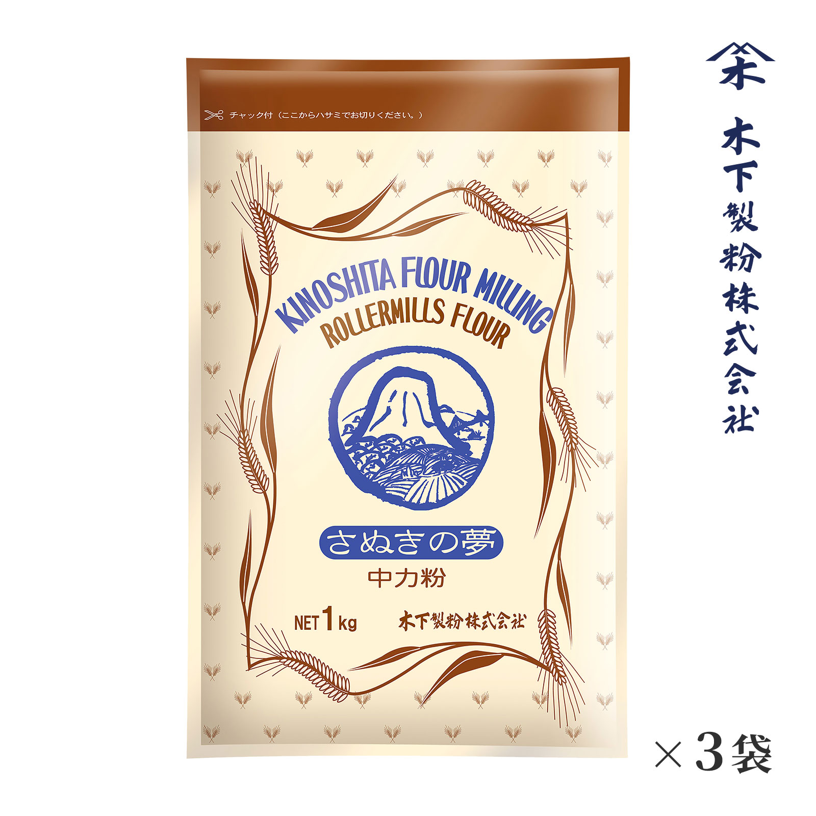 木下製粉 さぬきの夢 3kg(1kg×3袋) 国産小麦100% 手打ちうどん用 中力粉 小麦粉 チャック付きラミネート袋 ファリーナコーポレーション