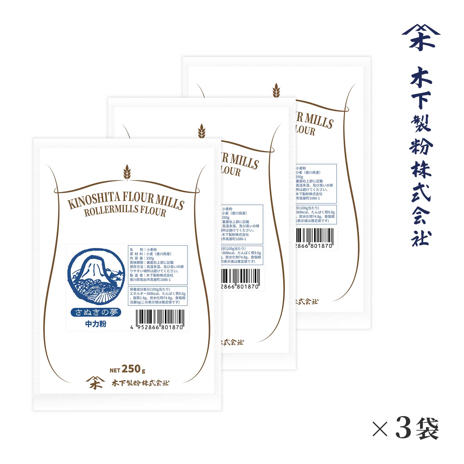 木下製粉 さぬきの夢 250g × 3袋 国産小麦100% 手打ちうどん用 中力粉 小麦粉 ファリーナコーポレーション